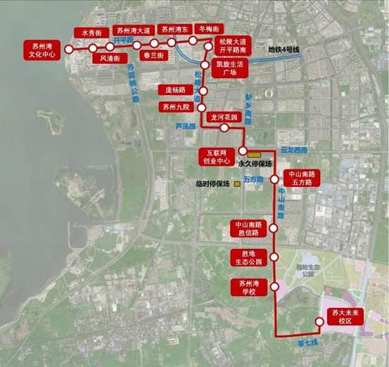 T2線二期工程線路長約8.6km,設7座車站,新建2座側式站(蘇州灣學校站、蘇大未來校區站),其余車站均改造或利用既有公交車站;于云龍西路、云龍西路復線之間地塊增設1處永久停保場,占地面積約34000m2。