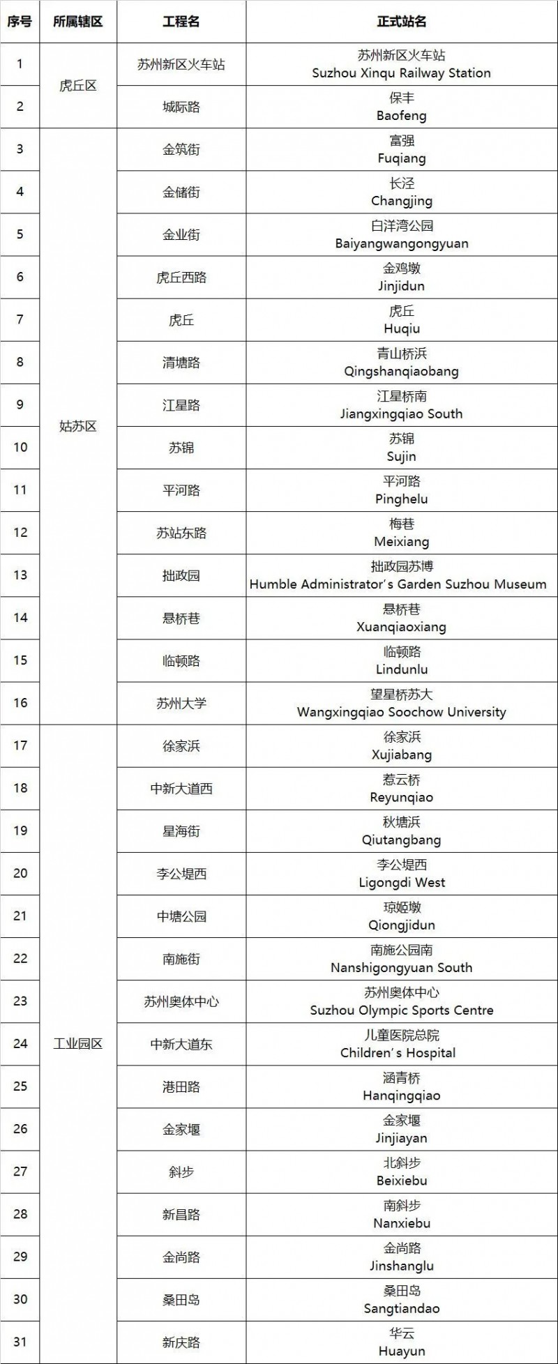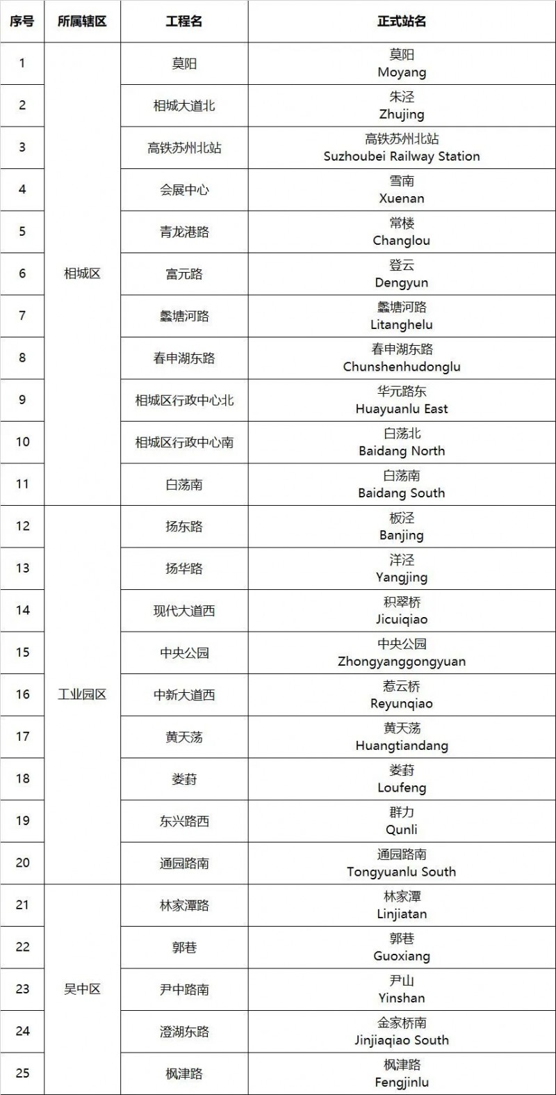 1月24日,經蘇州市交通局批準、民政局備案,蘇州軌道交通6、7、8號線車站站名正式確定,一起來看看!