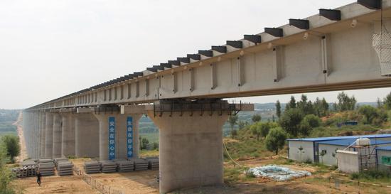 該標(biāo)段在8月中旬順利通過橋涵和路基工程竣工驗收,從而成為蒙華鐵路首段驗收工程項目,目前由兵團(tuán)第十一師建設(shè)單位承建的蒙華鐵路內(nèi)蒙古自治區(qū)烏審旗段已全線貫通至陜西省境內(nèi)。圖為蒙華鐵路MHTJ-2標(biāo)段壯觀的無定河特大橋(國鐵一級)鐵路工程。