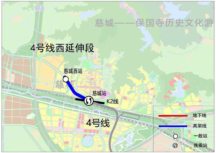 4號線延伸工程線路全長約4.14公里,包括西延段和東延段。其中,西延段線路全長約1.77公里,從4號線慈城站引出至終點站慈城西站。