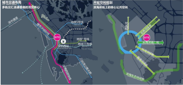 深圳前海國際樞紐中心位于粵港澳大灣區核心區域,是深圳機場與香港機場之間出入境換乘的重要樞紐,同時也是深港西部快線、穗莞深城際線、深圳地鐵1號線、5號線及11號線等五條軌道線的交通。