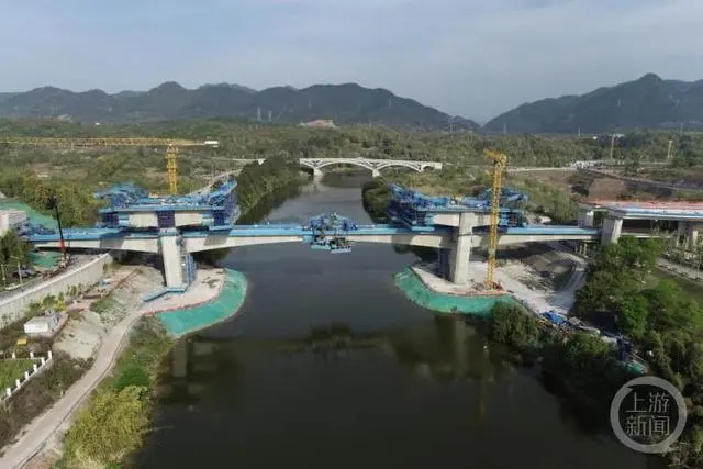 由中建三局承建的重慶軌道交通15號線一期現代大道站(不含)—兩江影視城區間高架段御臨河公軌共建橋,是重慶首個大跨度V墩懸臂現澆公軌兩用橋,是重慶軌道交通15號線全線通車的關鍵節點,該橋梁是集高架主干路、軌道快線、地面城市道路于一體的綜合交通走廊。