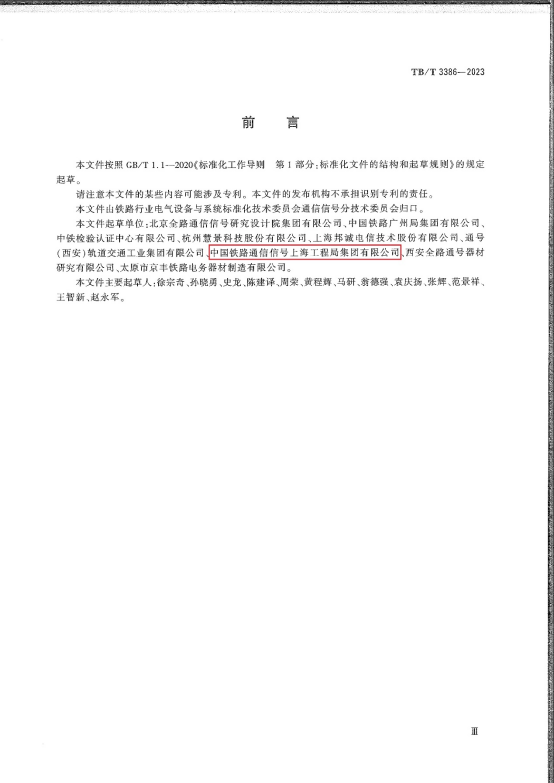 近日,中國通號上海工程局集團參與編制的《道岔缺口監測系統設備》(TB/T 3386-2023)行業標準正式發布。該標準是上海工程局集團首次參與行業產品類標準制定,實現了上海工程局集團行業標準制定新突破。