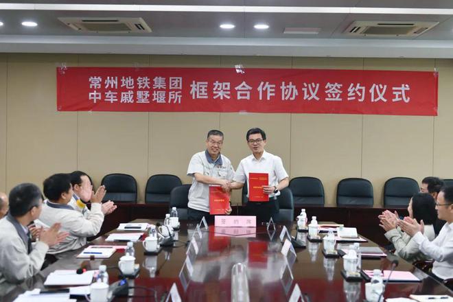 5月8日,常州地鐵集團有限公司(以下簡稱地鐵集團)與中車戚墅堰機車車輛工藝研究所股份有限公司(以下簡稱戚墅堰所)簽訂戰略合作協議。地鐵集團總經理徐卿,副總經理董毅、朱智洪、宋楊,戚墅堰所總經理李培順、副總經理莫彥承、靳國忠出席簽約儀式。