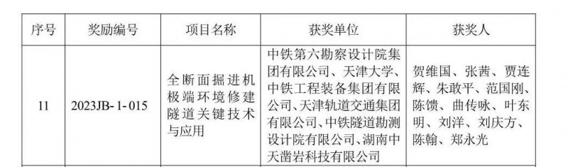 日前,天津市人民政府發(fā)布2023年度科學(xué)技術(shù)獎的獲獎名單,其中,天津軌道交通集團有限公司作為主要研究單位完成的科研項目《全斷面掘進機極端環(huán)境修建隧道關(guān)鍵技術(shù)與應(yīng)用》榮獲天津市科學(xué)技術(shù)進步一等獎。