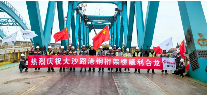 5月21日,由騰達建設承建的機場聯絡線施工15標動走雙線特大橋的跨大沙路港(北橫河)鋼桁架梁橋合龍。橋梁為全鋼結構橋梁,橋梁跨度114米。
