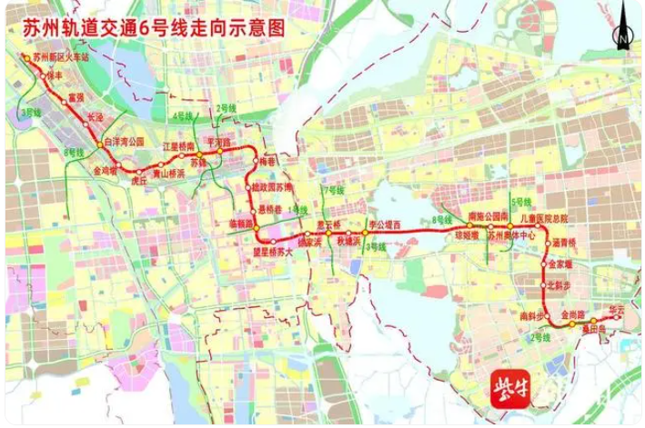 蘇州市軌道交通6號線西起蘇州新區火車站,東至新慶路站,全長36.12公里,設站31座,是蘇州城市東西向穿越古城及金雞湖的重要客流通道,同時也是城際客流的重要集散線路。
