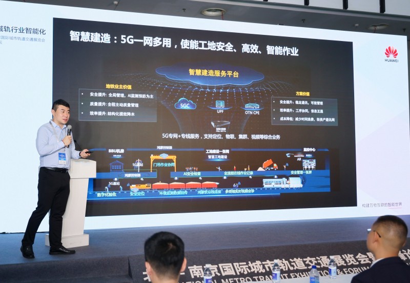 本次展會,華為聯合南京地鐵產業公司發布了5G+AI智慧工地解決方案。5G網絡收編多個獨立建設的無線網絡,一張網即可提供通訊,視頻回傳,物聯網,定位,集群對講等綜合能力,終端數據能實時回傳,有效提高了數字化建造管理水平。