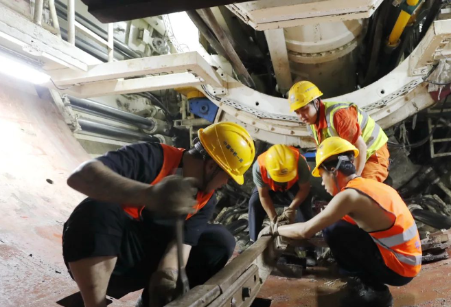 同時,項目部對盾構機施工團隊技術人員、作業人員進行了技術和安全交底,并細化了責任分工。在深約20米深的盾構機始發現場,施工單位中鐵一局項目總工姚俊東手持卡尺,一連測量了油缸行程及盾尾間隙4個點位。他稱,盾構機起步要“穩”,嚴格控制盾構機姿態,從而確保隧道成型管片緊密,無錯臺,滿足隧道線性;維持開挖土量與排土量的平衡,以保證土體穩定。