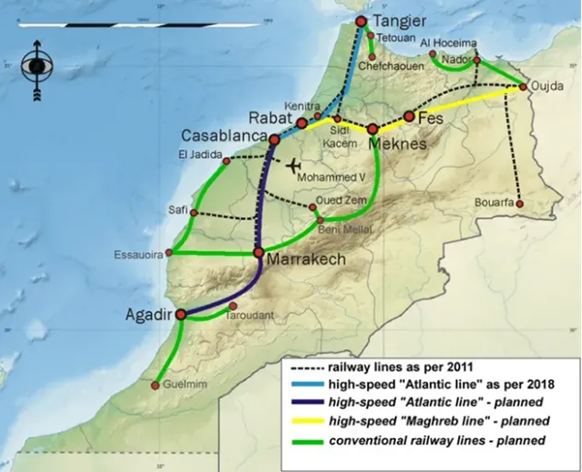 凱尼特拉-馬拉喀什高鐵的列車設計時速350公里,運行時速320公里,將服務于摩洛哥拉巴特、薩雷和卡薩布蘭卡等主要城市,與ONCF現有的鐵路網絡相連。該項目還包括在馬拉喀什建設一個全新車站,并在凱尼特拉建設一個機車車輛維護設施。今年4月,摩洛哥國鐵ONCF宣布撥款6.95億迪拉姆(約合6900萬美元)用于該項目的土建工程。