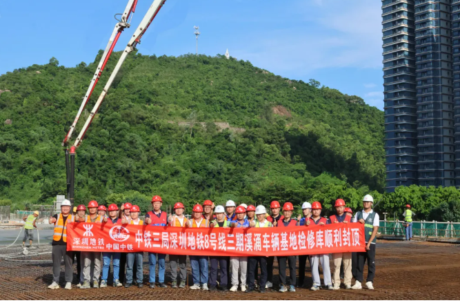 8月30日,隨著檢修庫最后一方頂板混凝土澆筑完成,中鐵三局廣東公司承建的深圳地鐵8號線三期溪涌車輛基地,蓋體面積最大的庫區順利實現封頂,標志著溪涌車輛基地正式從土建工程轉入站后工程施工,向實現工程建設總目標又邁出了堅實的一步。