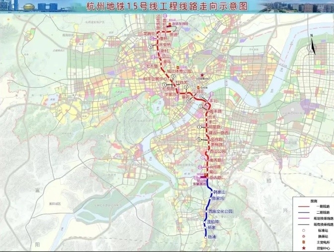 杭州地鐵15號線一期工程作為南北向的骨干線,線路起于蕭山區(qū)亞太路站,止于臨平區(qū)崇賢站。該線串聯(lián)起錢江新城、錢江世紀城等核心區(qū)域,向南連接蕭山老城,向北輻射臨平崇賢。