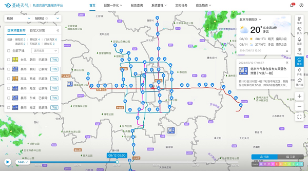 數據顯示,在2023年汛期期間,該系統成功助力地鐵運營單位有效應對了3次強降水事件,并提前制定執行了應急預案,有效防范了超強臺風“杜蘇芮”的影響,以及成功應對了2輪強降雪過程,確保了地鐵運營的安全穩定,提升運營效率。