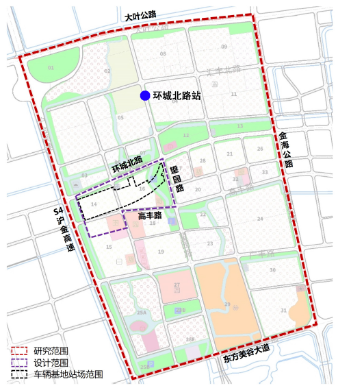 環城北路車輛基地位于上海奉賢新城南橋鎮FXC1-0017單元內,設置在軌道交通15號線環城北路站南側,基地交通便捷,環境優美,宜居宜業。本次征集包含以下兩個范圍。一是研究范圍,北至大葉公路,東到金海公路,南至東方美谷大道,西到滬金高速,總面積約595公頃。本次設計應分析研究基地作為軌道交通15號線南延伸段車輛基地上蓋項目在全市的功能定位、發展態勢;研究基地與上位規劃的發展關系;分析基地作為軌交TOD綜合開發項目對周邊區域的帶動作用。二是設計范圍,北至環城北路,西至S4公路東河東側綠化帶,南到匯豐名都北邊界-匯豐西路-高豐路,東至望園路,面積約33.8公頃。設計內容主要包括對基地的策劃研究、城市設計及道路交通組織等。設計深度達到詳細城市設計深度,以打造特色產業集群地和國際知名的美麗健康消費目的地為核心訴求,以形成生態宜居、公共活動流線組織流暢、各項功能布局合理、具有可實施性的建筑開發方案為核心訴求。