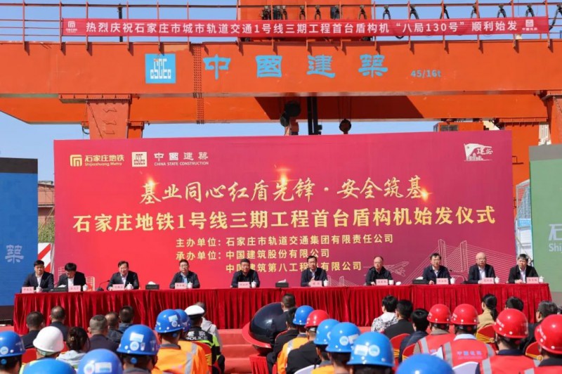 4月14日上午,石家莊地鐵1號線三期工程首臺盾構始發儀式在上莊站舉行。隨著石家莊市軌道辦黨組書記、主任何永利下達指令,直徑6.48米的巨大刀盤緩緩啟轉,石家莊地鐵1號線三期工程上莊站~西王站盾構順利始發。鹿泉區人民政府副區長張凱,交投集團黨委委員、總工程師陳軍偉,軌道集團黨委書記、董事長付朝立,軌道集團黨委副書記、總經理劉玉華,軌道集團副總經理王龍以及市住建局、鹿泉區人民政府、中建股份、中建八局等單位的負責同志參加了活動。