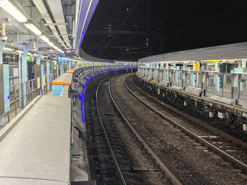 香港東鐵線弧度較大的大學(xué)站站臺(tái)