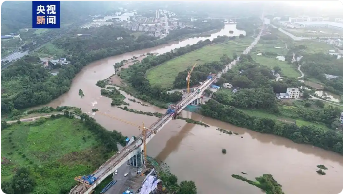 大橋全長2820米,先后跨越濟(jì)廣高速、濟(jì)廣高速會昌收費站、湘水河、G206國道。項目施工工序復(fù)雜,高空作業(yè)內(nèi)容多,梁面作業(yè)空間狹小,安全風(fēng)險高。建設(shè)人員創(chuàng)新技術(shù)工藝,在質(zhì)量可靠、安全可控的前提下提升施工效率,合龍進(jìn)度比預(yù)期大幅提前。