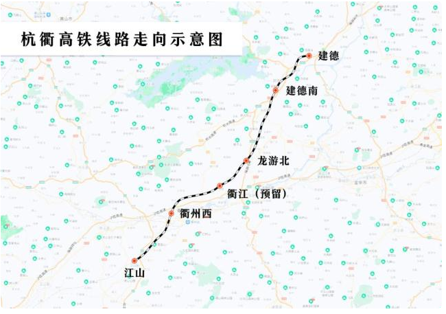 杭衢高鐵位于浙江省建德市和衢州市境內(nèi),線(xiàn)路起自杭昌高鐵黃昌段楊村橋線(xiàn)路所,途經(jīng)杭州市所轄建德市,衢州市所轄龍游縣、衢江區(qū)、柯城區(qū)、江山市,終至江山站杭衢場(chǎng),正線(xiàn)全長(zhǎng)約131公里,設(shè)計(jì)時(shí)速350公里,共設(shè)建德(既有)、建德南、龍游北、衢江(預(yù)留)、衢州西、江山(改擴(kuò)建)6個(gè)車(chē)站。正線(xiàn)共有橋梁116座、隧道33座,橋隧比高達(dá)78.7%。