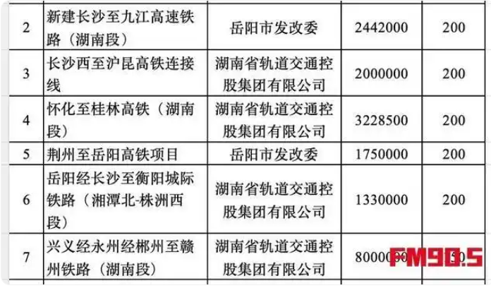 近日,湖南省發(fā)改委正式發(fā)布《關(guān)于2025年重大投資項(xiàng)目前期工作經(jīng)費(fèi)擬支持項(xiàng)目的公示》,其中涉及6個(gè)重大鐵路項(xiàng)目:新建長(zhǎng)沙至九江高速鐵路(湖南段)、長(zhǎng)沙西至滬昆高鐵連接線、懷化至桂林高鐵(湖南段)、荊州至岳陽高鐵項(xiàng)目、岳陽經(jīng)長(zhǎng)沙至衡陽城際鐵路(湘潭北-株洲西段)、興義經(jīng)永州經(jīng)郴州至贛州鐵路(湖南段),共計(jì)擬支持1150萬元。