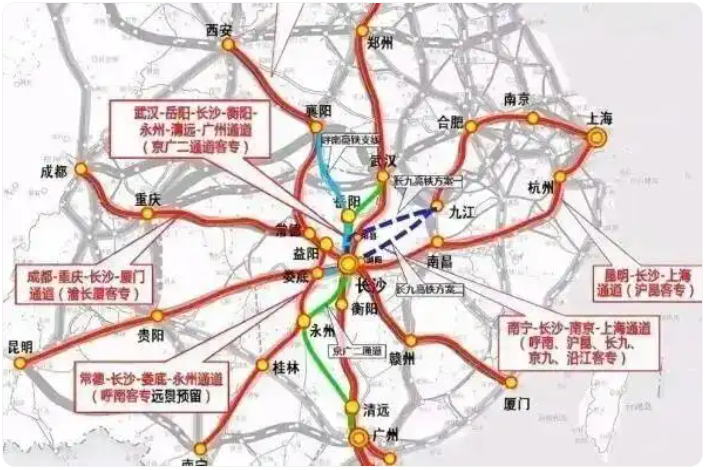 在這些線路中,有4個(gè)湖南出省高鐵大通道,比如長(zhǎng)沙至九江高速鐵路、懷化至桂林高鐵、荊州至岳陽高鐵、興義經(jīng)永州經(jīng)郴州至贛州鐵路,也有助力長(zhǎng)株潭一體化的重要線路,如:長(zhǎng)沙西至滬昆高鐵連接線(即長(zhǎng)韶婁高鐵)、岳陽經(jīng)長(zhǎng)沙至衡陽城際鐵路(湘潭北-株洲西段)。