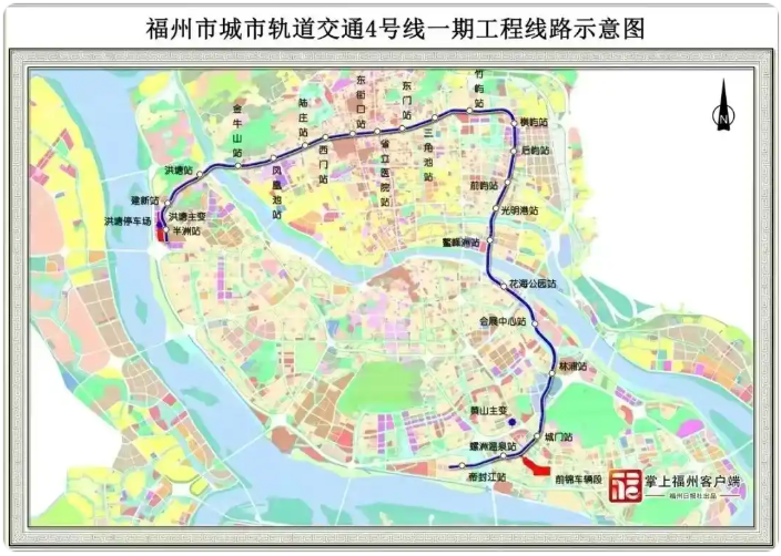 4號線后通段全長約4.4公里,共設車站4座(即半洲站、建新站、洪塘站、金牛山站),投入使用后將在洪塘站與5號線實現換乘。