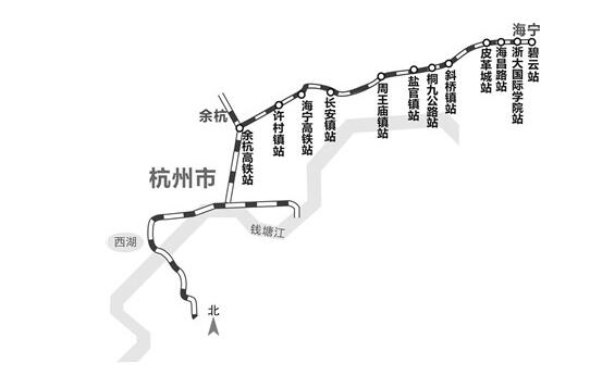 杭海城際是杭州都市圈城際鐵路4條(杭海、杭紹、杭德、杭安)支線之一,也是杭州首條通往市外縣域的城際鐵路。起于杭州余杭高鐵站,出站向東經過許村、長安鎮(zhèn)、周王廟、鹽官鎮(zhèn)、斜橋進入海寧市主城區(qū),經皮革城后,沿海州東路至08省道(環(huán)城東路)止。與杭州地鐵1號線(遠期9號線)換乘,線路全長48.18公里,設站13座,其中地下車站5座,高架車站8座。
