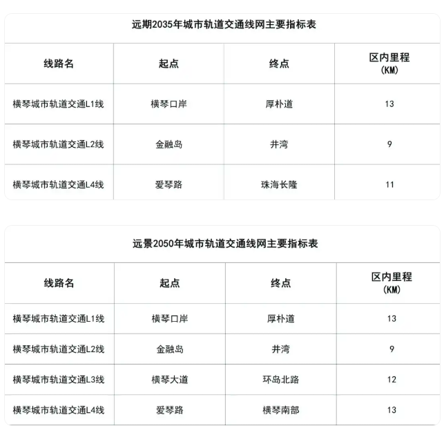 上個月,《橫琴粵澳深度合作區城市軌道交通線網規劃(2021-2035年)》草案公示,提到線網規劃的近遠期主要指標如下: