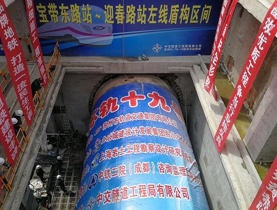 近日獲悉,蘇州軌道交通3號線10標寶帶東路站~迎春路站區間左線“蘇軌十九號”盾構機順利始發。