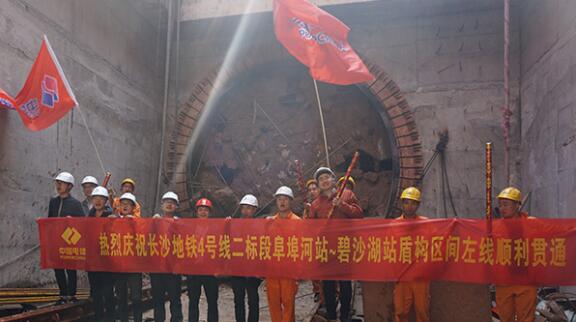 3月23日上午,水電八局承建的長沙地鐵4號線阜埠河站~碧沙湖站區間左線“鋼盾5號”盾構機刀盤鉆破最后一層圍護結構混凝土,阜碧區間左線順利貫通。