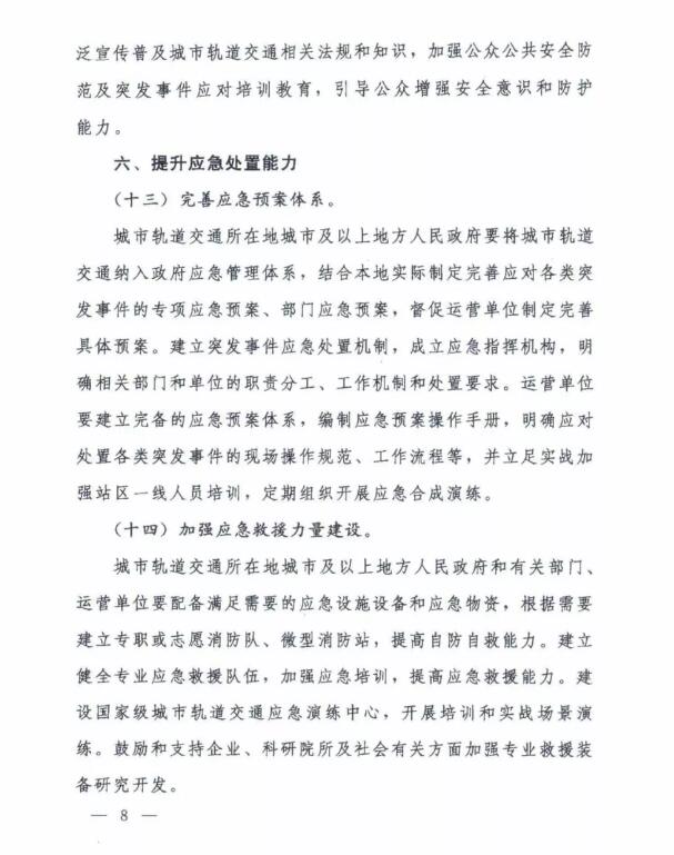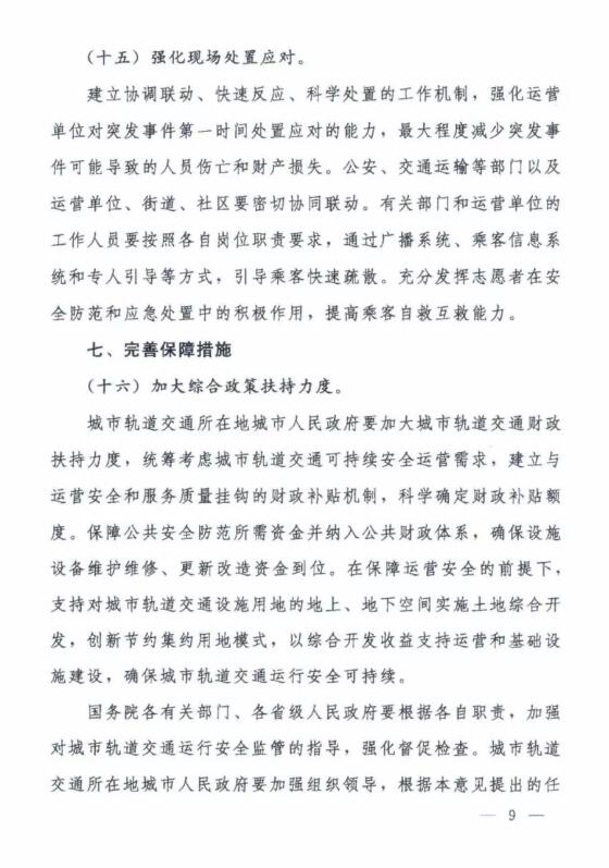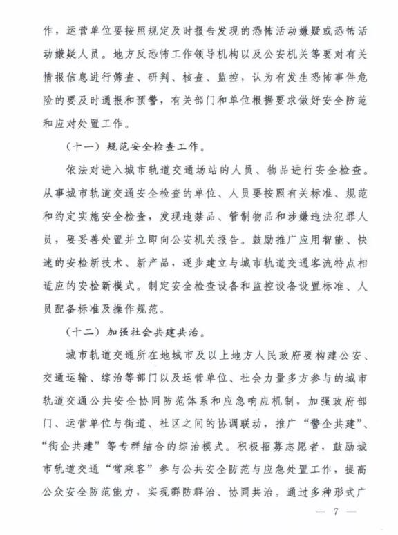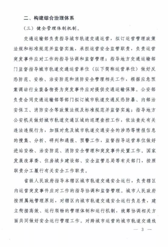 近日獲悉,交通運輸部負責指導城市軌道交通運營,擬訂運營管理政策法規和標準規范并監督實施,承擔運營安全監管職責,負責運營突發事件應對工作的指導協調和監督管理;公安部負責會同交通運輸部等部門擬訂城市軌道交通反恐防暴、內部治安保衛、消防安全等政策法規及標準規范并監督實施。