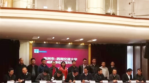 近日,株洲市科技局聯合市委人才辦組織20余家企業赴西南交通大學開展科技創新人才與成果轉化對接交流,中車株機公司、中車株洲所、608所科技開發公司、株洲九方制動、株洲旭陽機電等5家企業分別與西南交大機械工程學院、電氣學院簽訂合作協議。