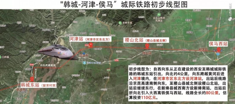 韓城-河津-侯馬城際鐵路項目是連接陜西省韓城市、山西省河津市、稷山縣、新絳縣、侯馬市5縣市的高速客運專線,設(shè)計為雙線電氣化鐵路。線路全長80公里,估算投資110億元,目前該項目正在加快推進(jìn)當(dāng)中。