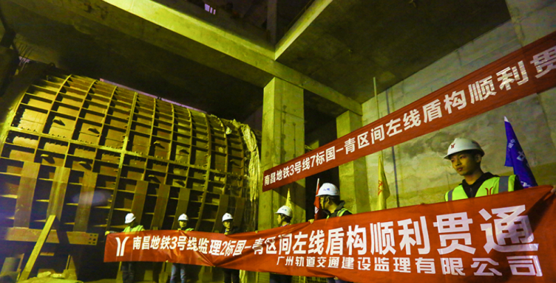 2019年2月26日,隨著“火炬號”盾構機刀盤穿越青山湖西站圍護結構地下連續墻,順利進入鋼套筒筒體內,標志著南昌軌道交通3號線單線距離最長、風險源最多、地質情況最復雜、難度系數最大的國威路站-青山湖西站隧道盾構區間左線順利實現貫通。