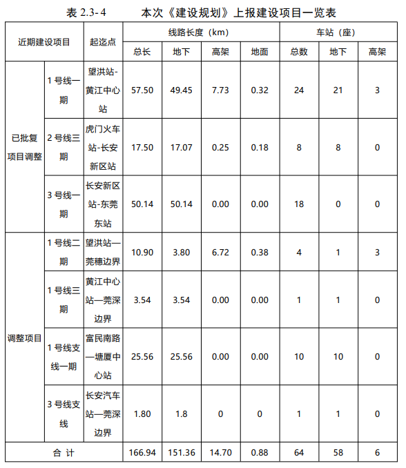 東莞市城市軌道交通第二期建設(shè)規(guī)劃調(diào)整(2019-2024年)建設(shè)項目共計7條線路,線路總里程166.94km,其中,軌道交通高架線路14.7km,地下線151.36km,地面0.88km;設(shè)車站64座,其中高架車站6座,地下車站58座。具體線路包括1號線一期、2號線三期、3號線一期、1號線二期、1號線三期、1號線支線一期、3號線支線。