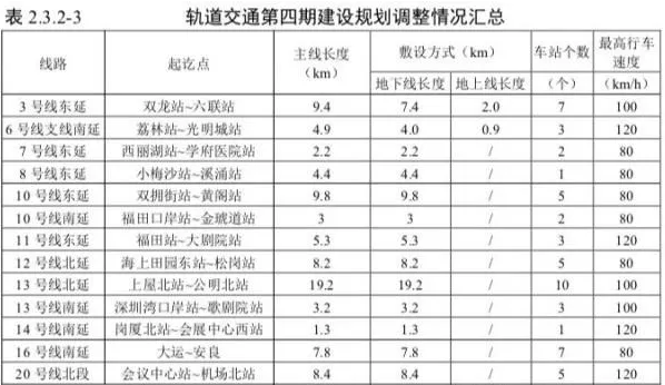 深圳市政府于2018年底啟動編制的《深圳市城市軌道交通四期建設(shè)規(guī)劃調(diào)整(2017~2022)》,結(jié)合深圳市城市發(fā)展對軌道交通的需求緊迫性,最終確定第四期建設(shè)規(guī)劃調(diào)整(2017-2022)建設(shè)項目包括3號線東延、6號線支線南延、7號線東延、8號線東延、10號線東延、10號線南延、11號線東延、12號線北延、13號線北延、13號線南延、14號線南延、16號線南延、20號線北段共計11條線路,13個項目。總長約87.1公里,設(shè)站53座。其中地下段約84.2公里,高架段約2.9公里。