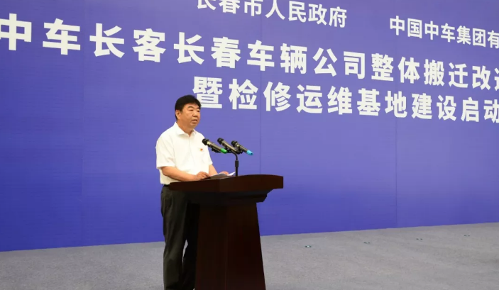 長春市市長劉忻在致辭中說,值此中車長客長春車輛公司整體搬遷改造合作協議簽訂暨運維基地建設啟動之際,我代表長春市委、市政府向中車集團領導的到來表示歡迎,向社會各界給予長春的關心幫助表示感謝,向拼搏奉獻支持長春經濟社會發展的廣大長客員工表示慰問。中車長客是長春制造業的一張亮麗名片,我們要深入貫徹落實習近平總書記視察東北重要講話和重要指示精神,牢記總書記的殷殷囑托,按照市委全會確定的“經濟總量超萬億”和“兩個500萬”發展目標,發揮裝備制造業優勢,全力打造軌道交通千億級產業。長春市將一如既往為長客發展做好全方位保障,為企業轉型發展營造一流環境,把長客這張名片擦得更亮。