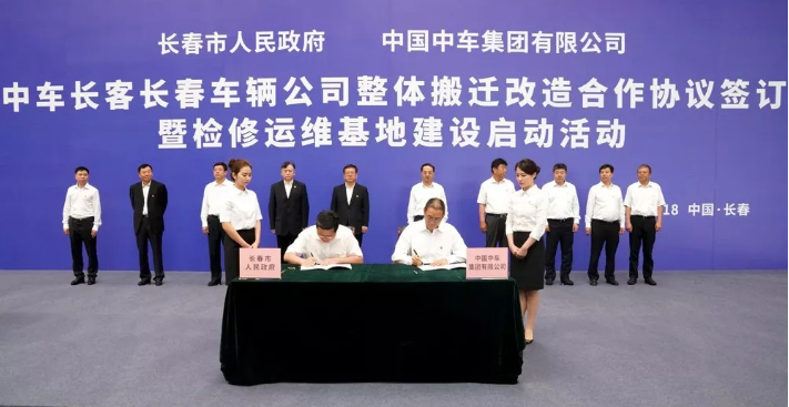 8月18日,長春市人民政府與中車集團正式簽訂中車長客長春車輛公司整體搬遷改造合作協議,中車長客檢修運維基地建設同時啟動。吉林省委常委、長春市委書記王凱,長春市市長劉忻、常務副市長王路,中車集團公司總經理孫永才、執行董事徐宗祥,中車長客股份公司黨委書記、董事長王潤,總經理安忠義,副總經理、長春車輛公司黨委書記、董事長于洪波,中車科技園公司黨委書記、董事長宮良國等領導參加了儀式。