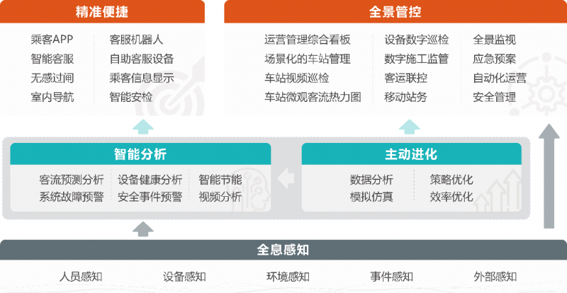主動進化。通過數據建模,采用深度學習模型,基于大數據分析車站大腦,最終實現智慧車站主動策略優化、效率優化的進化。